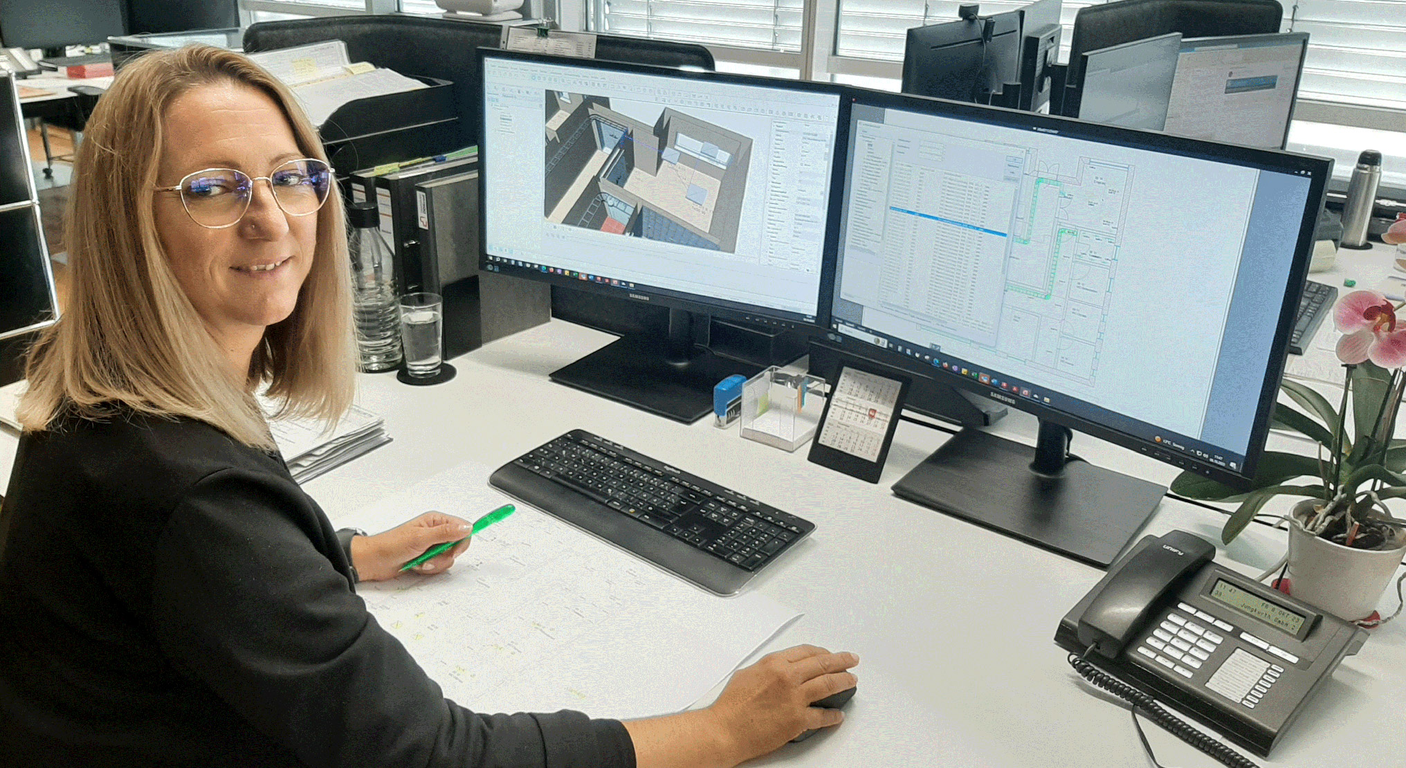DDS-CAD IN DA HOUSE! Das ist mal ne Nachricht. Unser neues CAD-Tool „DDS-CAD“ ist am Start und ermöglicht es uns, mit wenigen Handgriffen aus einer 2D-Zeichnung ein 3D- Modell zu erstellen, um so zum Beispiel die Elektroplanung schneller und effizienter umzusetzen. Damit haben wir nicht nur hochmoderne Optionen für eine gewerkespezifische Planung, etwa die Erstellung von Stromlaufplänen und Raumaufmaßen oder eine realitätsnahe Darstellung zum Aufbau des Schaltschrankes, sondern wir können auch eine umfassende und lückenlose Dokumentation gewährleisten. Mit anderen Worten: ein digitales Werkzeug für alles, Ersparnis an Zeit und Aufwand, Qualitätssicherung auf Top-Niveau. So lässt sich Elektrotechnik professionell und einfach planen, berechnen, simulieren und dokumentieren. Noch mehr Zukunft: Dass die neue Software auch das Thema BIM schon auf dem Schirm hat, brauchen wir nicht extra zu erwähnen. Viel wichtiger ist, dass unsere Kollegin Silke schon jetzt richtig viel Spaß an der Arbeit hat.